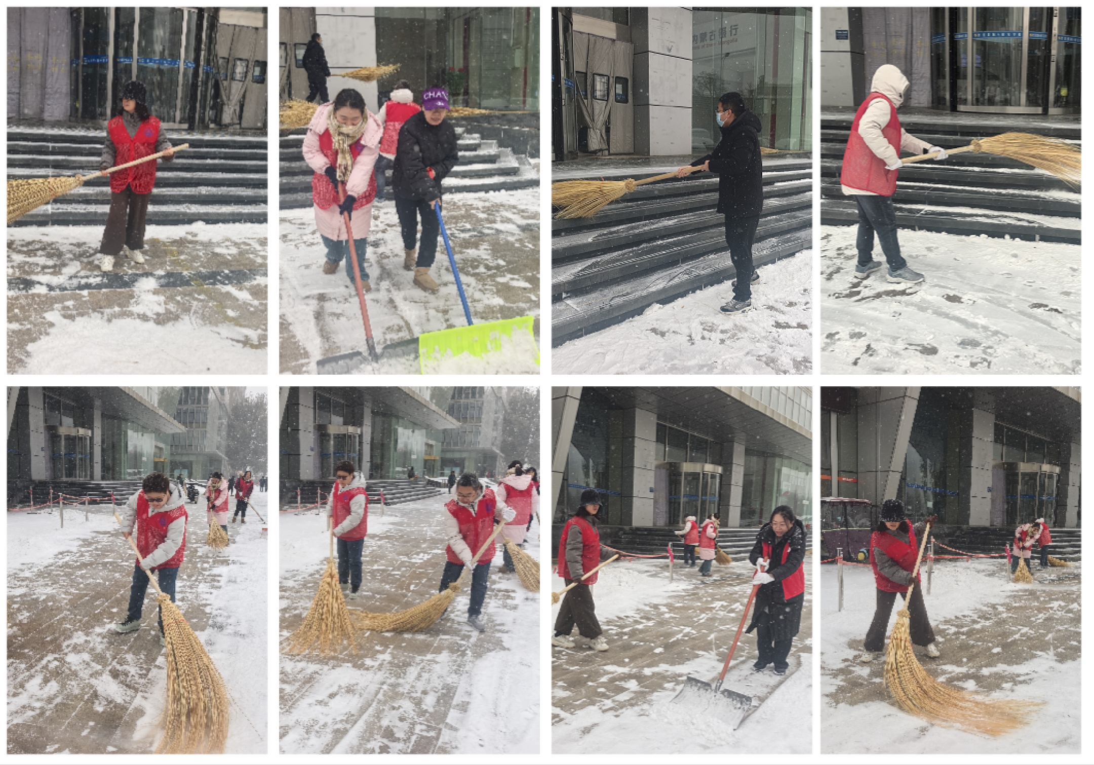 宣講會(huì)剛結(jié)束,黨員志愿者們就頂著凜冽寒風(fēng)和漫天飛雪,投身到清理辦公樓周邊積雪的工作中,他們以實(shí)際行動(dòng)詮釋全會(huì)精神,踐行“我為群眾辦實(shí)事”的承諾。在辦公樓前,分工明確,有的揮舞鐵鍬鏟除積雪,有的手持掃帚清掃路面,盡管大雪不斷落下,他們的額頭卻沁出了細(xì)密的汗珠。經(jīng)過一個(gè)多小時(shí)的奮戰(zhàn),辦公樓前的停車區(qū)域、人行通道被清掃得干干凈凈,上下樓梯也恢復(fù)了安全暢通。